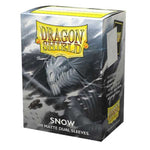 Classic and elegant, as white as snow. Dragon Shield Dual Matte sleeves. Clear front and a textured matte back. Fully opaque sleeves with a black interior, an elegant backdrop for black bordered cards. The sturdy cardboard box fits 75+ single sleeved cards or 65+ double sleeved cards.