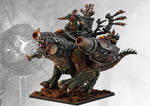 Following the defeat of the Dragons, it has long been a common practice among the Dweghom holds to capture and break the lesser draco forms to service. These drakes haul the Hellbringer Cannons, weapons designed to hunt and kill dragons and level cities… as well as anything else unlucky enough to find itself in its line of fire.