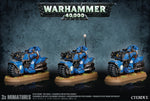 The kit is supplied with three Bikers, which can be equipped with twin-linked bolters and bolt pistol. Also included is a Space Marine Transfer Sheet.