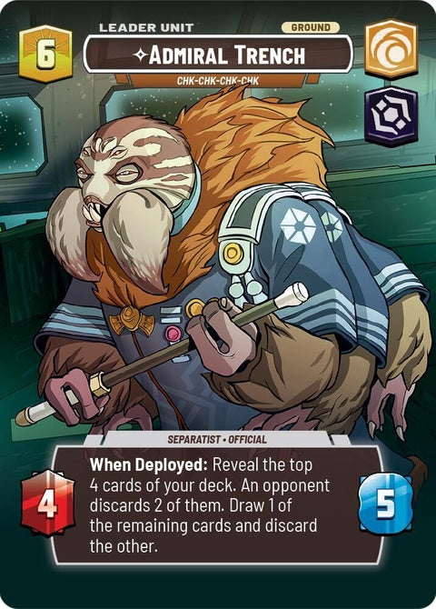 When Deployed: Reveal the top 4 cards of your deck. An opponent discards 2 of them. Draw 1 of the remaining cards and discard the other.