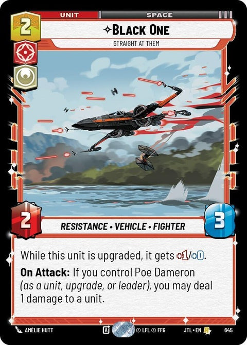 On Attack: If you control Poe Dameron (as a unit, upgrade, or leader), you may deal 1 damage to a unit.