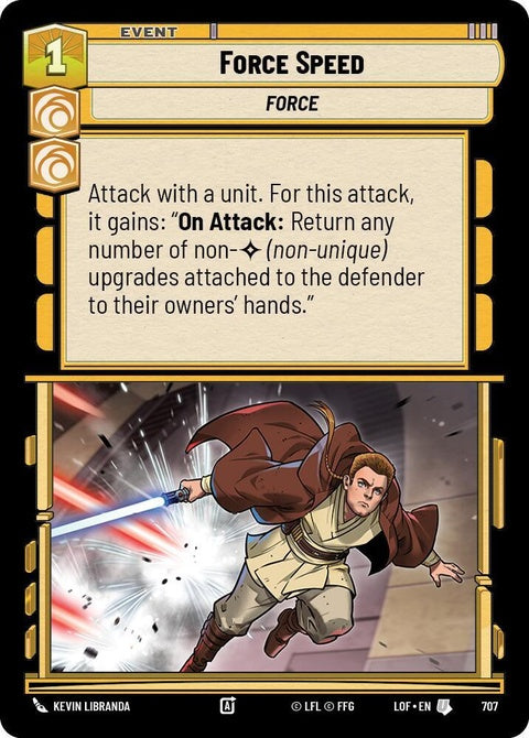 Attack with a unit. For this attack, it gains: “On Attack: Return any number of non- (non-unique) upgrades attached to the defender to their owners' hands.”