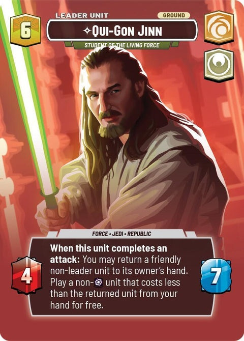 When this unit completes an attack : You may return a friendly non-leader unit to its owner's hand. Play a non- unit that costs less than the returned unit from your hand for free.