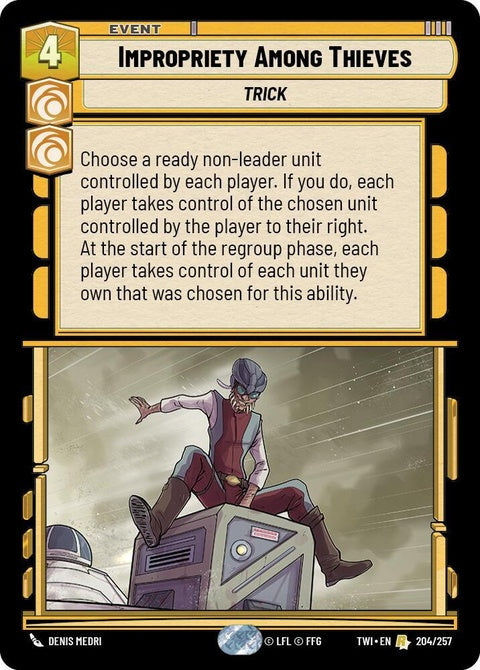 Choose a ready non-leader unit controlled by each player. If you do, each player takes control of the chosen unit controlled by the player to their right. At the start of the regroup phase, each player takes control of each unit they own that was chosen for this ability.