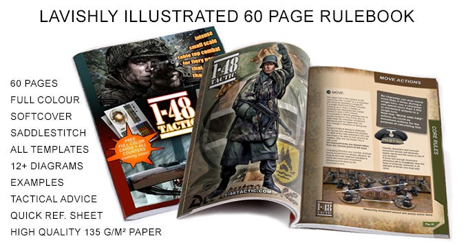 60 Page full-colour Rulebook for 1-48 Tactic. A brutal fast-paced World War 2 Miniatures wargame.