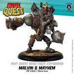 Additionally, the Malvin & Mayhem model can be played as a standard member of a player's Crew in any game mode of Riot Quest. This expansion also includes a normal Hero stat card and Riot Gear cards for when Malvin & Mayhem are played regularly.