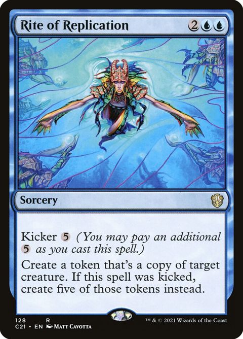 Create a token that's a copy of target creature. If this spell was kicked, create five of those tokens instead.