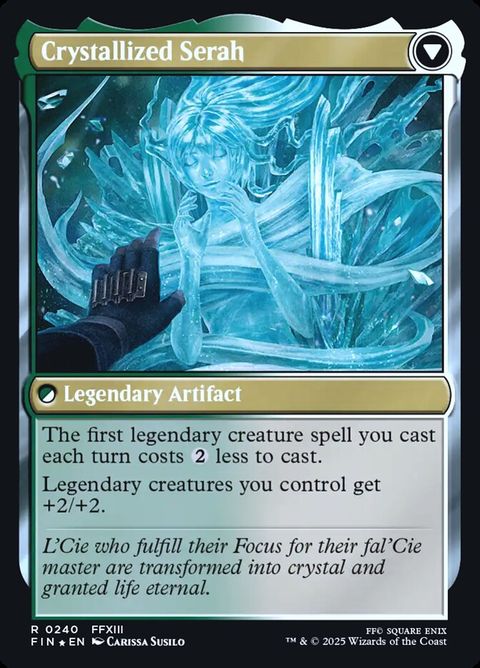At the beginning of combat on your turn, if you control two or more other legendary creatures, you may transform Serah Farron.