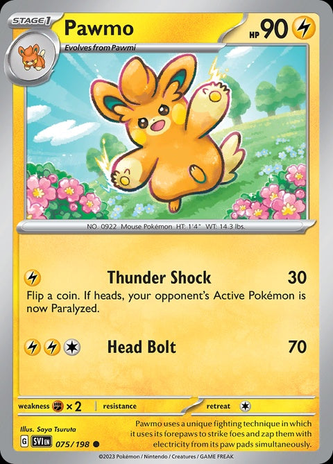 Pawmo uses a unique fighting technique in which it uses its forepaws to strike foes and zap them with electricity from its paw pads simultaneously.