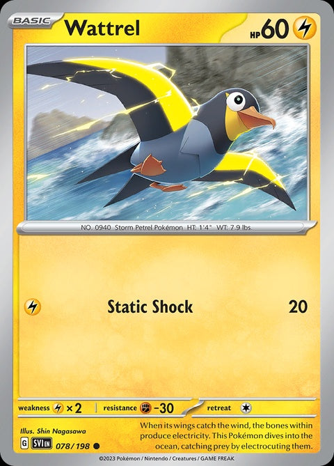 When its wings catch the wind, the bones within produce electricity. This Pokémon dives into the ocean, catching prey by electrocuting them.