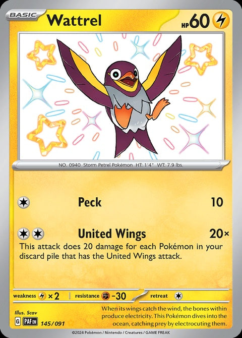 When its wings catch the wind, the bones within produce electricity. This Pokémon dives into the ocean, catching prey by electrocuting them.