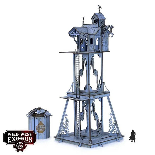 Dominating the skyline of towns like Red Oak, these watchtowers allow the residents to keep a watchful eye for the telltale dust clouds that announce the arrival of Iron Horses and the bandits who often ride them. With parts to assemble it instead as a water tower, the Red Oak Watchtower is a great addition to your table or even the centre point for one.