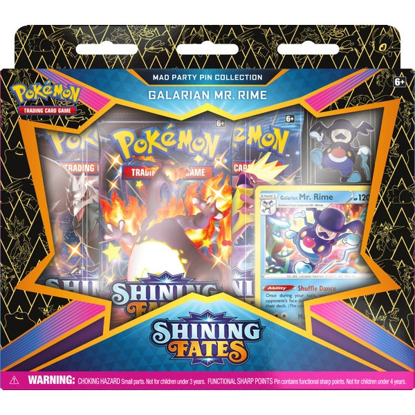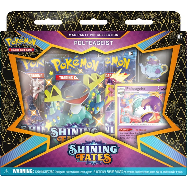 Nothing brightens the day quite like a party, and the only thing better than a party is a Pokémon-themed party. Share a spot of tea with Bunnelby, Dedenne, Galarian Mr. Rime, or Polteageist. There's no need to worry about party treats for guests with this collection featuring Pokémon TCG: Shining Fates booster packs and a cool collector's pin!