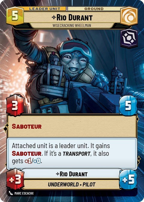 Saboteur Attached unit is a leader unit. It gains Saboteur. If it's a Transport, it also gets +1/+0.