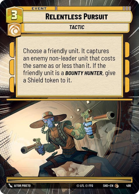 Choose a friendly unit. It captures an enemy non-leader unit that costs the same as or less than it. If the friendly unit is a Bounty Hunter, give a Shield token to it.