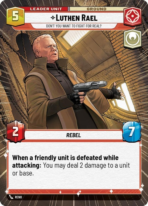 When a friendly unit is defeated while attacking: You may exhaust this leader. If you do, deal 1 damage to a unit or base.